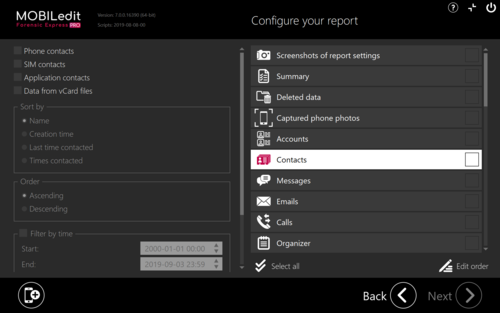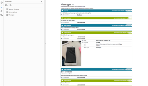 Fine-tuned reports: A tremendous amount of effort has been dedicated to refining reports so they are customizable, easy to read, concise and professional. An enhanced report configurator allows you to define exactly which data will be extracted from the phone and how the report will look. Each report is divided into sections, labeled with icons, pictures, and highlighted relevant data so you can find evidence quickly. A complete, configurable and comprehensive list of all events with a time-stamp is shown on a timeline and messages can be filtered by conversation or by contact names.